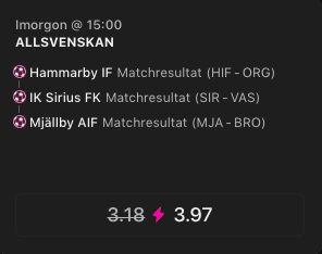 Spela Hammarby+Sirius+Mjällby till boostat odds