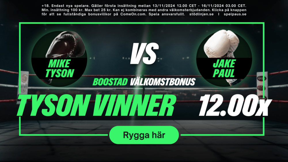 🥊Du får hela 12.00 gånger pengarna på Mike TysonKlicka här för att hämta boosten!