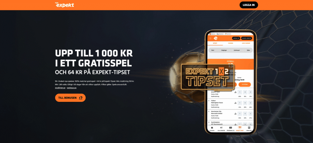 18+. Endast nya spelare. 100% matchat gratisspel + 64 kr på Expekt-Tipset. Min. insättning 100 kr. Min. 1,80 odds. Giltigt i 60 dagar från att villkor uppfylls. Villkor gäller. Spela ansvarsfullt. stodlinjen.se – spelpaus.se.