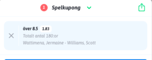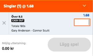 Över 8,5 180s i matchen spelas till oddset 1,68 hos Expekt