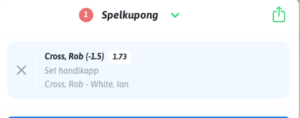 Rob Cross -1,5 Set spelas till oddset 1,73 hos Snabbare