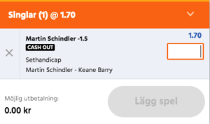 Martin Schindler -1,5 set spelas till oddset 1,70 hos Expekt