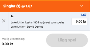 Luke Littler kastar 180 i varje set som spelas till oddset 1,67 hos Expekt