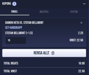 Stefan Bellmont +1,5 Set spelas till oddset 2,25 hos Betinia