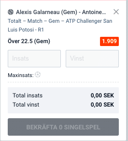 Bellier gjorde säsongspremiär förra veckan på långsamt grus, och det såg inte bra ut. Han vann 72% bakom sin förstaserve, men sedan hade han inget att hämta. Här är förutsättningarna dock annorlunda och hans serve kommer att bita ordentligt. Han kommer däremot att ha fortsatt svårt i själva spelet och han kommer få väldigt svårt att bryta Galarneau. Jag förväntar mig få breaks, om än något, i matchen. Jag spelar över 22,5 games i matchen till oddset 1,909 hos Pinnacle. Spelbart ned till 1,65.