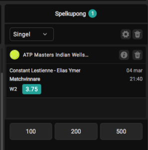 Jag förstår att Lestienne är favorit i denna matchen sett till oddsen. Han har trots allt vunnit ett par matcher i år. Det har dock varit en hel del svaga prestationer från fransmannen och han är aldrig en favorit man håller i handen till låga odds. När dessa möttes 2021 så stod Ymer i cirka 1,30. Nu är oddsen omvända. Dessa två har en liknande spelmässig nivå och bara Ymer kommer in i matchen rätt har han alla chanser att vinna. Alldeles för högt odds på svensken här och jag spelar Elias Ymer till oddset 3,75 hos Fastbet.