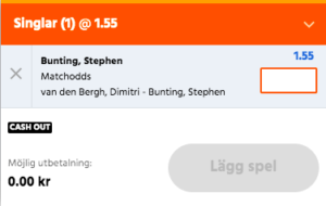 Det finns en anledning till att oddsen ser ut som de gör ikväll, och det är Van den Berghs oväntade seger förra veckan. Utan den segern hade vi nog kunnat skära ned oddset på Bunting 20-30 punkter. Vi luras givetvis inte av förra veckans seger utan vi ser hela bilden, och den hela bilden säger att Bunting är den klart bättre spelaren här och ska inte stå högre än 1,40. Stephen Bunting att vinna matchen spelas till oddset 1,55 hos Expekt.