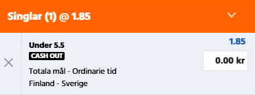 Under 5,5 mål @ 1.85 Expekt