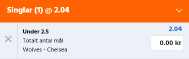 Expekt sticker ut här med 2.04 på undern och den känns given. Jag tror på en tillknäppt match där framförallt Wolves kommer fokusera på defensiven efter 3 insläppta senast. Chelsea sliter både offensivt och defensivt och vill säkerligen inte heller bjuda på något, tror på en tillknäppt första halvlek med 0-0 och då ska spelet vara tryggt.